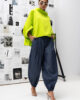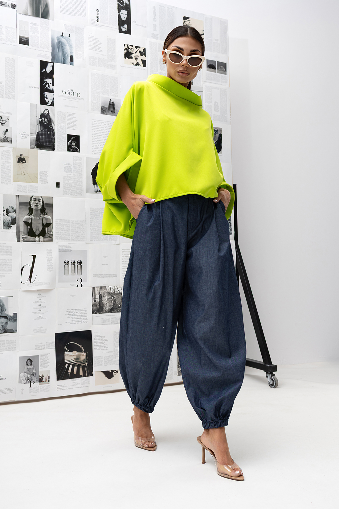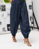 - Fason: luźny, szerokie nogawki, typ pumpy