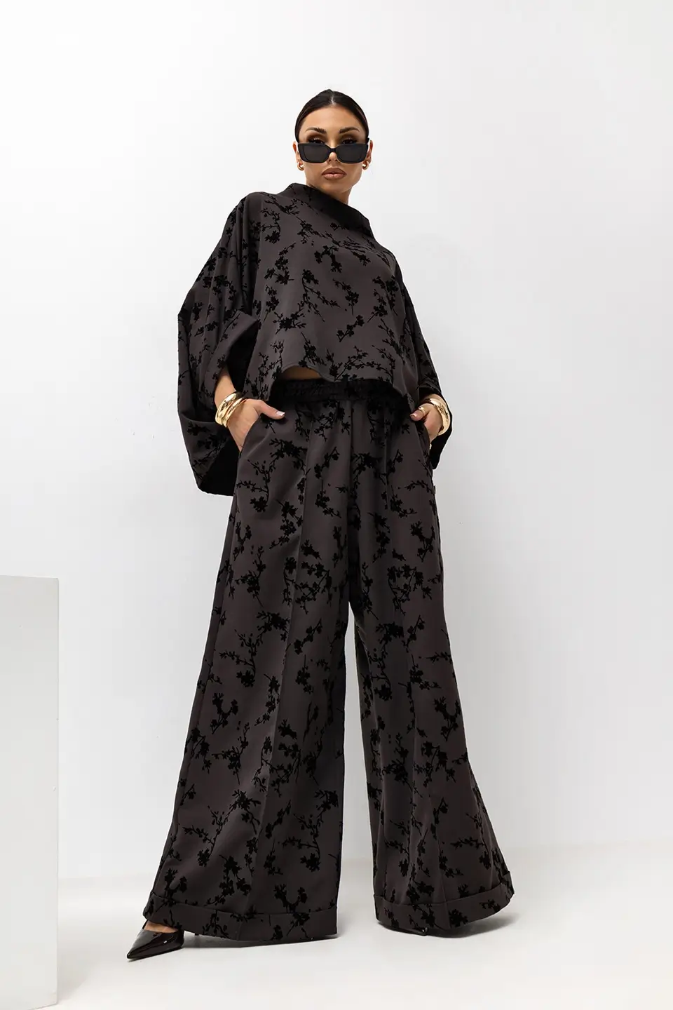 Modny fason z efektownym atłasowym wzorem