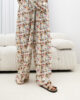 Spodnie wyróżniają się szerokimi nogawkami typu wide leg, które nadają stylizacji lekkości i eleganckiego charakteru. Wzór w pionowe paski optycznie wydłuża nogi i wysmukla sylwetkę, co czyni ten model wyjątkowo korzystnym wizualnie.