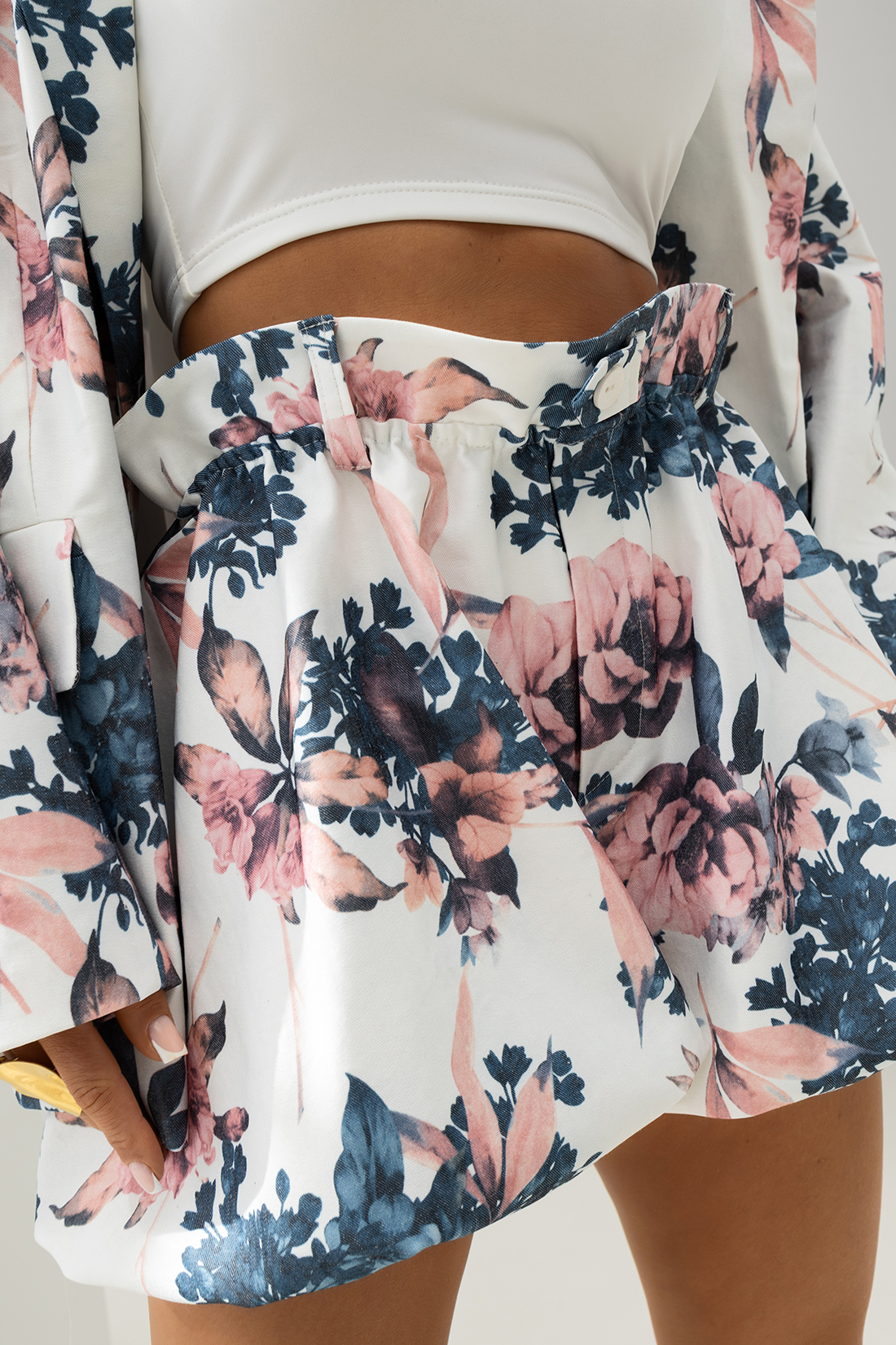 Model został zaprojektowany jako część kompletu – szorty idealnie pasują do koszuli z tego samego zestawu, tworząc spójną, modną stylizację. Doskonale prezentują się w połączeniu z kozakami oraz botkami, nadając outfitowi elegancki, a zarazem nowoczesny, jesienno-zimowy charakter.