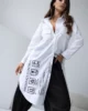 Odkryj wyjątkową koszulę Quality od Miss City Official – model, który łączy klasyczną elegancję z modnym, odważnym designem. Długi fason, zapinanie na guziki oraz designerskie napisy na przednim panelu sprawiają, że koszula wyróżnia się na tle tradycyjnych modeli. Dzięki luźnemu krojowi zapewnia komfort noszenia i swobodę ruchów, a jej długość nadaje stylizacjom oryginalnego charakteru.