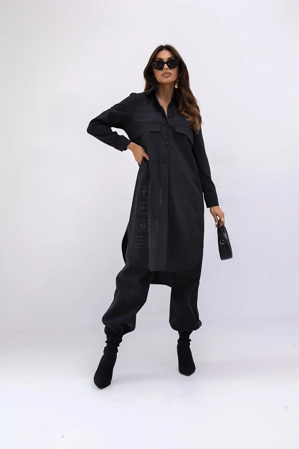 Odkryj wyjątkową koszulę Quality od Miss City Official – model, który łączy klasyczną elegancję z modnym, odważnym designem. Długi fason, zapinanie na guziki oraz designerskie napisy na przednim panelu sprawiają, że koszula wyróżnia się na tle tradycyjnych modeli. Dzięki luźnemu krojowi zapewnia komfort noszenia i swobodę ruchów, a jej długość nadaje stylizacjom oryginalnego charakteru.