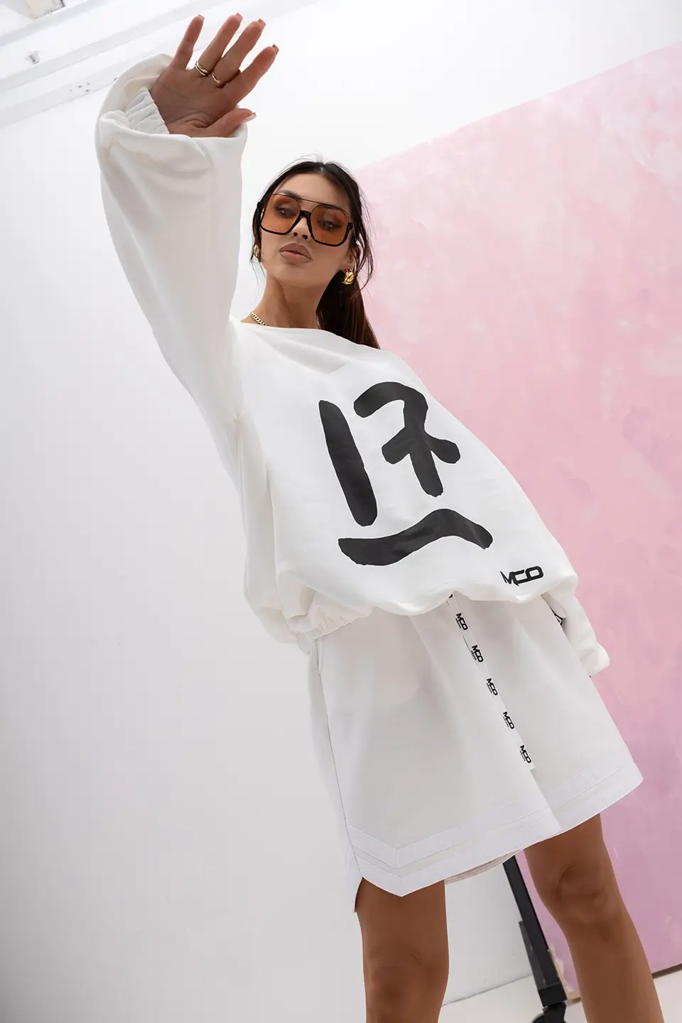 W zestawie znajduje się oversize’owa bluza z wyrazistym nadrukiem „17” na przodzie oraz koszykarskie spodenki o luźnym kroju z elastycznym pasem i troczkami z logo. Bluza zakończona jest szerokim ściągaczem, który pięknie układa się na sylwetce i nadaje sportowego charakteru. Spodenki są niezwykle wygodne i przewiewne – sprawdzą się nie tylko na trening, ale także na letnie dni lub casualowe stylizacje.