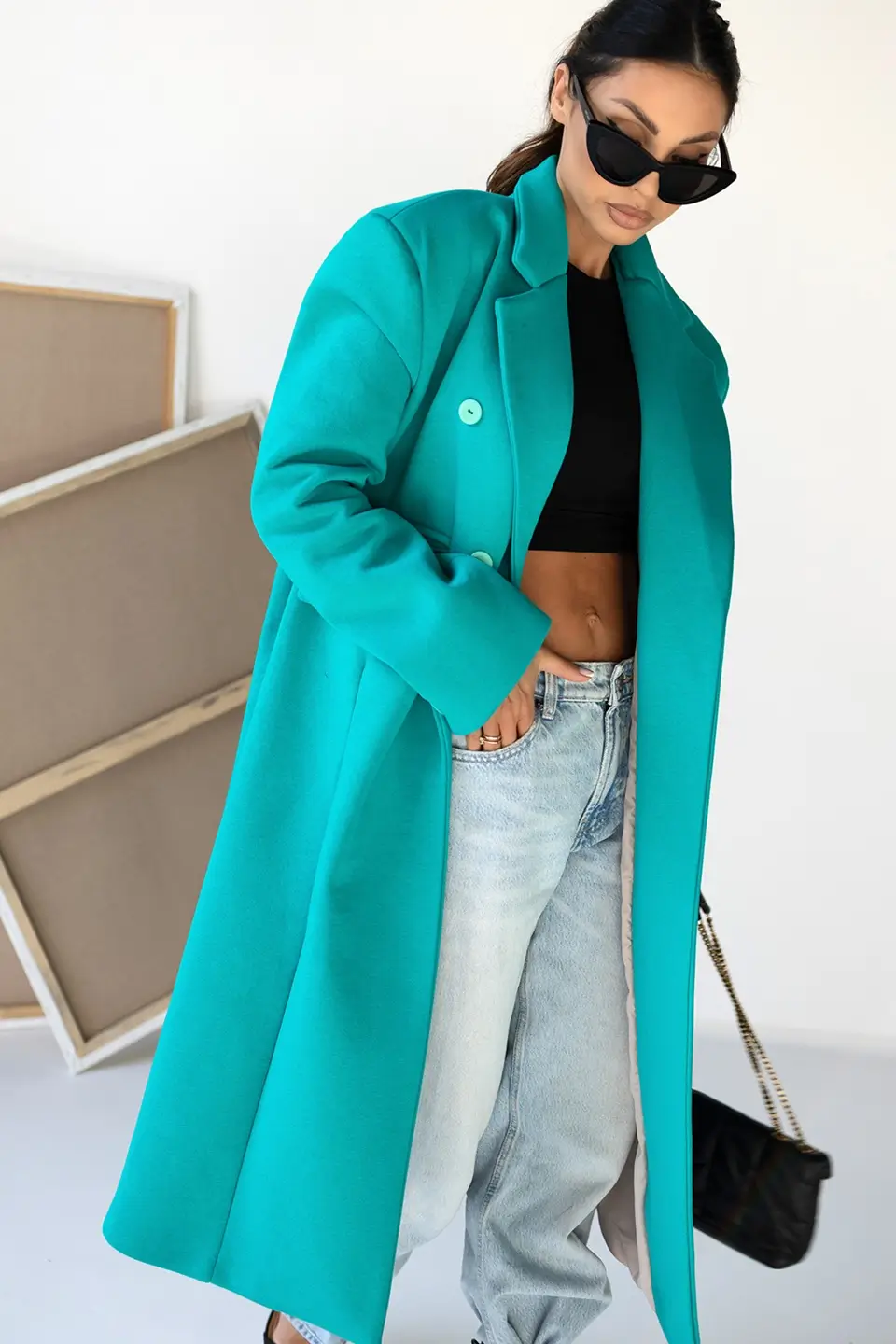 🔹 Rozmiar uniwersalny – dzięki oversize’owemu fasonowi płaszcz pasuje na różne typy sylwetek