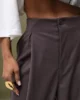- Detal: plisy przy biodrach, marszczenia na dole nogawek
