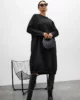 Model wyróżnia się luźnym, komfortowym krojem oraz geometrycznymi przeszyciami, które subtelnie modelują sylwetkę. To sukienka, która nie potrzebuje wielu dodatków – jej forma sama gra pierwsze skrzypce.