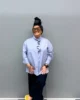 Koszula jest rozpinana, z ciekawym wykończeniem w postaci delikatnej falbany przy dekolcie, która nadaje całości subtelnie kobiecego, a jednocześnie wyrazistego charakteru. Model doskonale sprawdza się zarówno zapięty – w bardziej eleganckiej, uporządkowanej stylizacji, jak i rozpięty – noszony warstwowo, gdzie zawsze wygląda interesująco i stylowo.