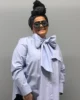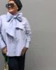 Koszula została uszyta z wysokogatunkowej, klasycznej bawełny, znanej z męskich koszul – dzięki temu jest elegancka, trwała i oddychająca, a przy tym nosi w sobie nutę pewności siebie. Przy dekolcie zastosowano delikatną stójkę, do której doszyta została szarfa umożliwiająca stworzenie imponującej dużej kokardy lub stylowego długiego krawata – w zależności od nastroju i okazji.