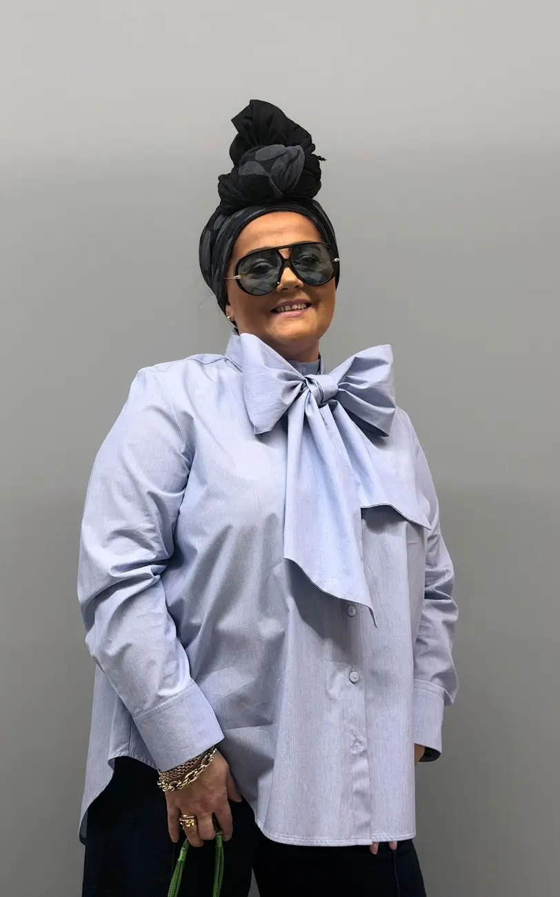 Koszula Rivabella ze stójką i szarfą to doskonała propozycja dla kobiet, które szukają elegancji z charakterem, perfekcyjnego fasonu Plus Size oraz modelu, który zawsze robi wrażenie – niezależnie od stylizacji.