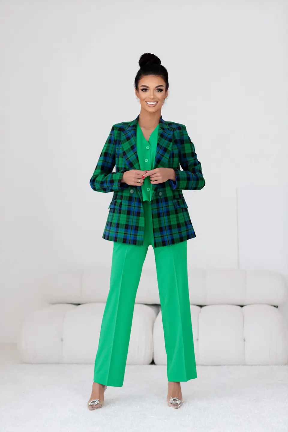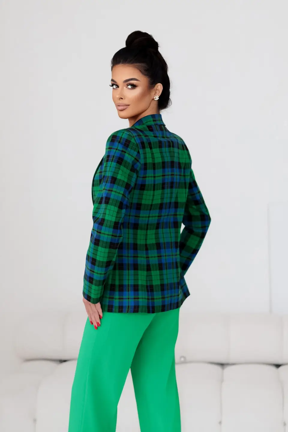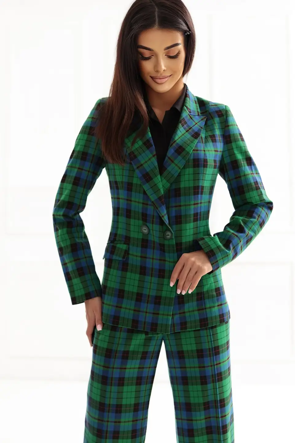 Ponadczasowy wzór w kratkę nadaje marynarce eleganckiego wyrazu i sprawia, że stylizacja zyskuje wyrazisty akcent. Dłuższy krój wpisuje się w aktualne trendy, jednocześnie zachowując uniwersalność i elegancki charakter. Model jest lekko taliowany, dzięki czemu subtelnie podkreśla sylwetkę, zapewniając jednocześnie komfort noszenia.