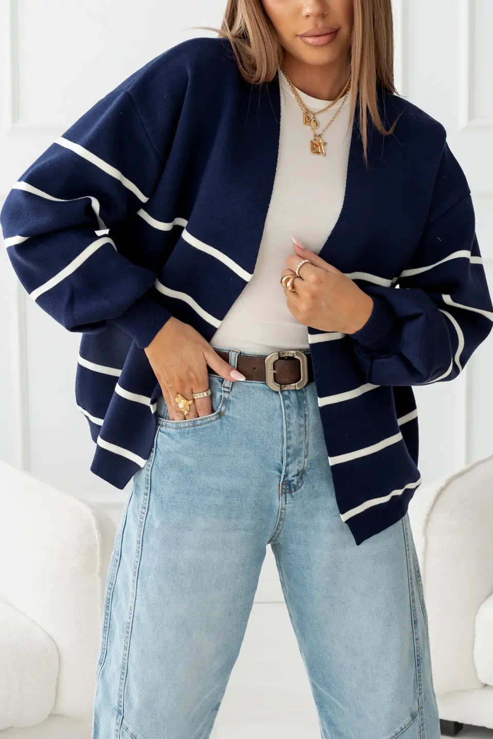 Simplicity Stripes – Damski Kardigan z Kaszmirem w Paski