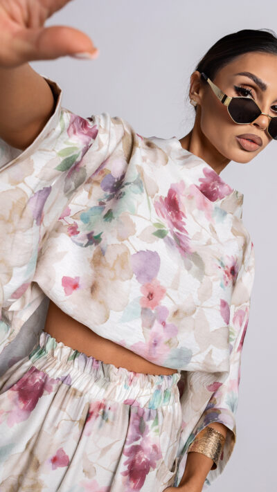 MISS CITY OFFICIAL Damska Bluzka Kimono Botanical (pudrowy beż)