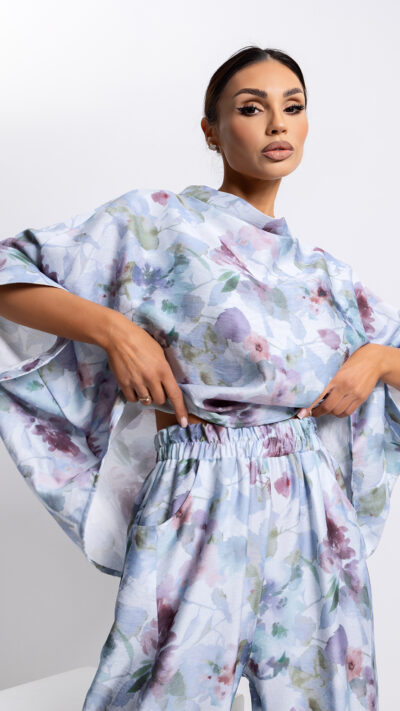 MISS CITY OFFICIAL Damska Bluzka Kimono Botanical (błękitny)