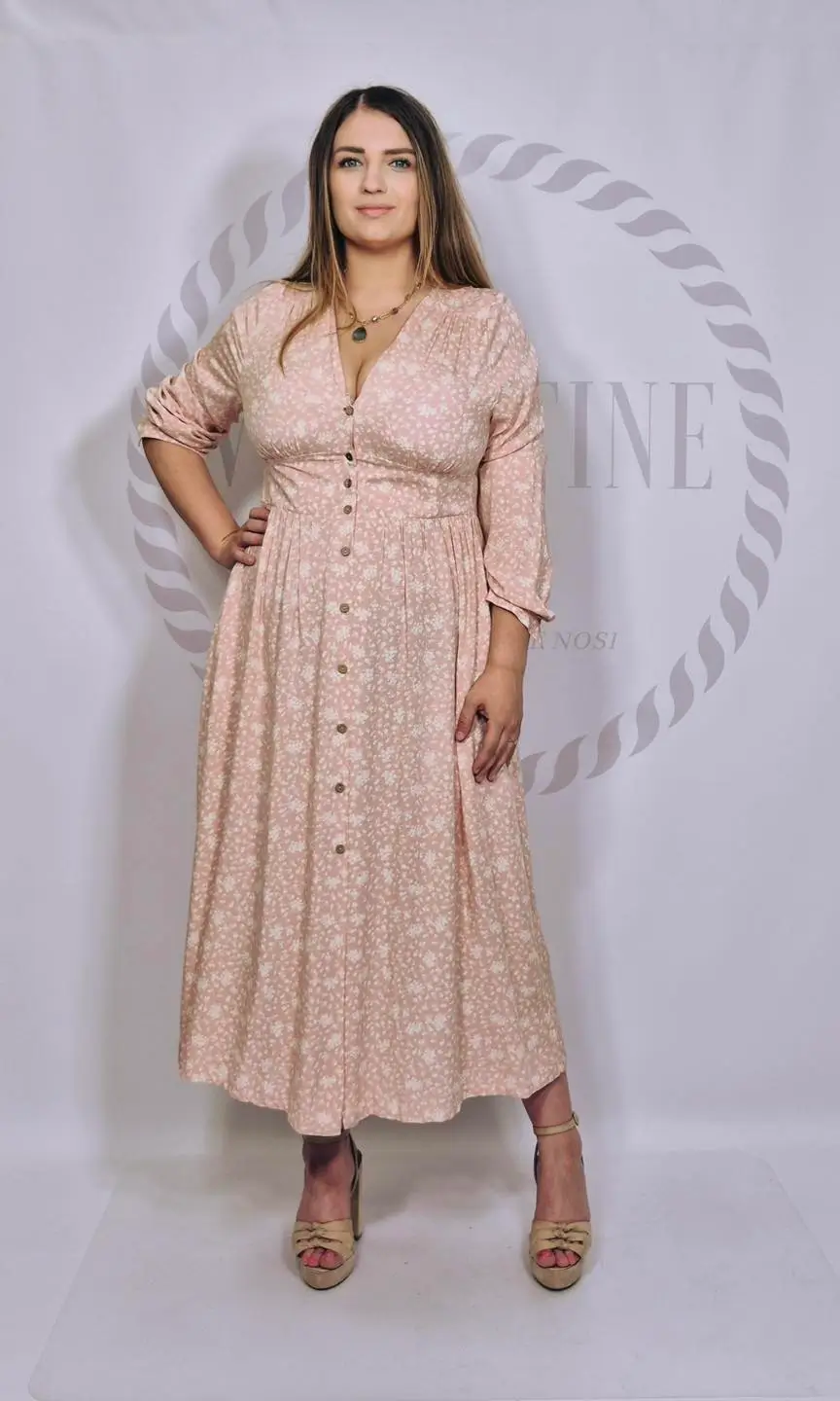 Materiał, z którego wykonano sukienkę, to wysokiej klasy wiskoza, będąca doskonałą alternatywą dla jedwabiu. Jest przewiewna, delikatna i doskonale dopasowuje się do ciała, tworząc przyjemne uczucie lekkości i komfortu nawet podczas ciepłych dni. Naturalne właściwości wiskozy sprawiają, że sukienka oddycha, nie elektryzuje się i nie podrażnia skóry – to idealna propozycja na lato, wiosnę i ciepłe jesienne dni.