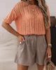 SimpliCity – Ażurowy sweter damski z krótkim rękawem | 100% bawełna