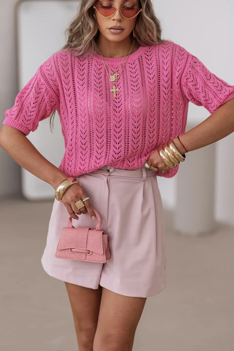 Delikatna, przewiewna struktura dzianiny sprawia, że model doskonale sprawdzi się w cieplejsze dni – zarówno do codziennych stylizacji, jak i bardziej eleganckich zestawów.