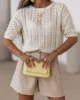 SimpliCity – Ażurowy sweter damski z krótkim rękawem | 100% bawełna