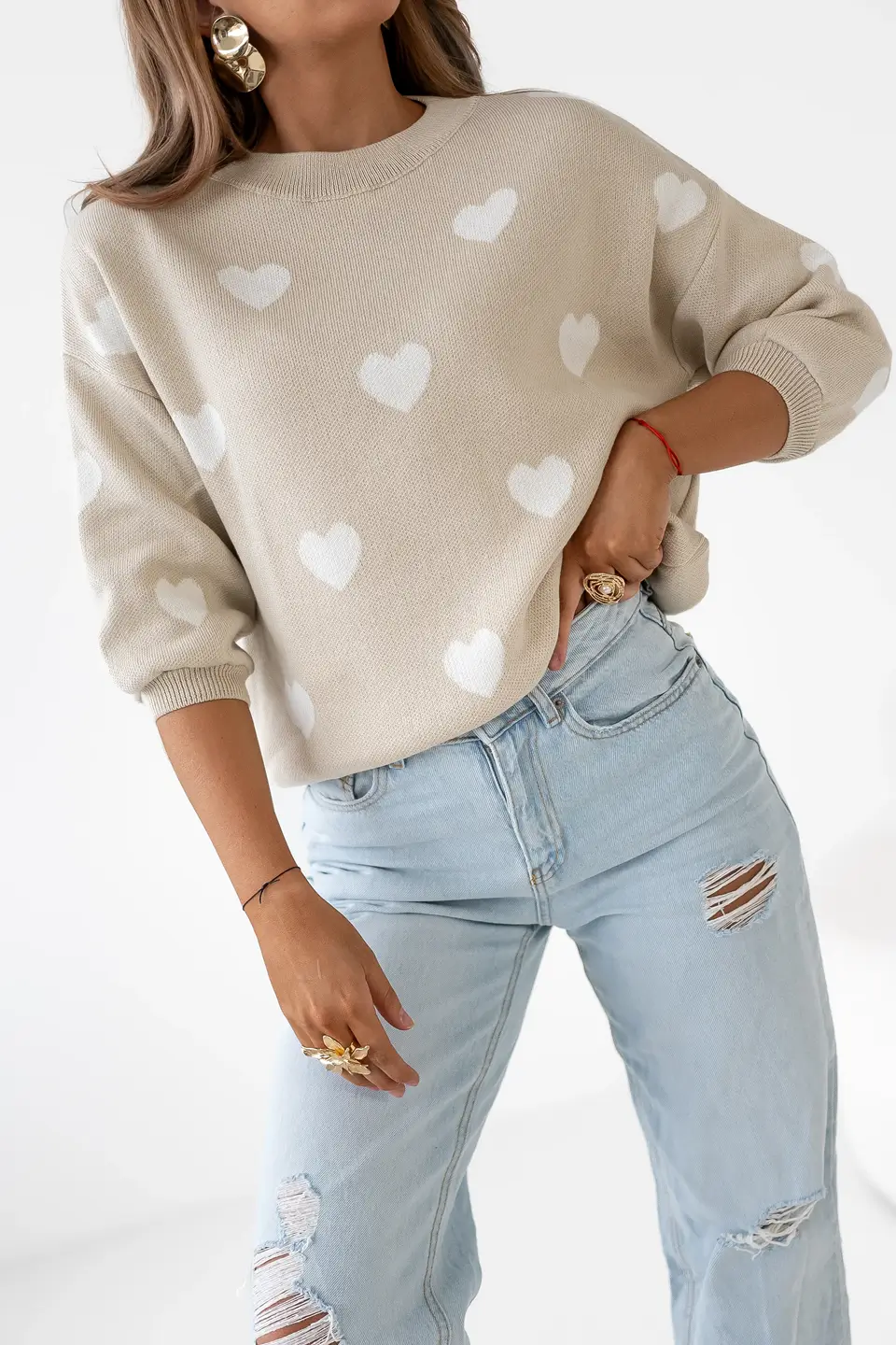 SIMPLICITY Sweter wzór serca (beż-ecru)