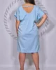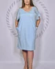 Dekolt w kształcie litery V zarówno z przodu, jak i z tyłu dodaje subtelnego uroku, a ozdobny paseczek z tyłu zapobiega zsuwaniu się sukienki z ramion. Delikatna aplikacja z przodu wprowadza dekoracyjny akcent, a lekko zwężany krój ku dołowi optycznie wydłuża sylwetkę.