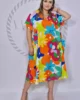 Włoska lniana sukienka w kolorowe kwiaty – model Size+