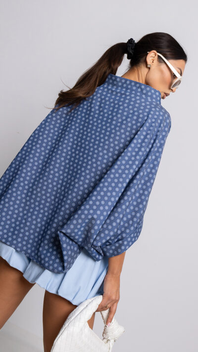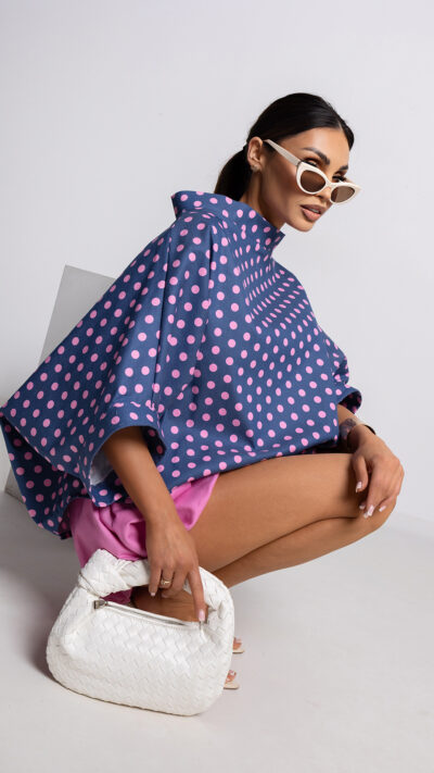 MISS CITY OFFICIAL Damska Bluzka Kimono Big Dot (niebiesko-różowy)