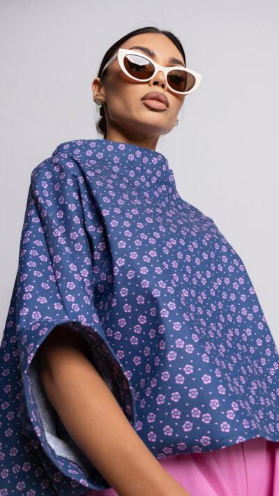 MISS CITY OFFICIAL Damska Bluzka Kimono Flower (niebiesko-różowy)